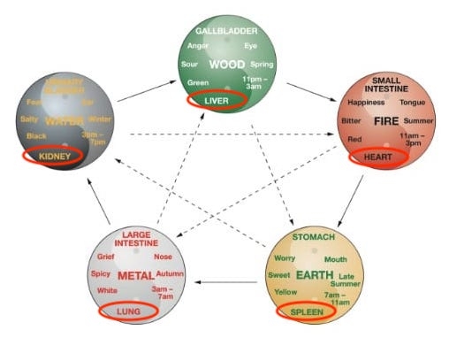 - metabolic harmony (between kidney/water, Earth/spleen and liver/wood)